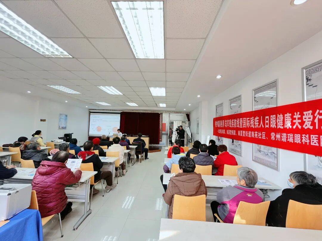 2025年12月3日,在第34个国际残疾人日来临之际,由武进区残疾人联合会、南夏墅街道残联、雪堰镇残联主办,南夏墅街道南苑社区、雪堰镇新康村委鼎力支持,常州谱瑞眼科医院承办的"守护睛彩视界 筑牢残疾防线"眼健康关爱行动圆满举办。